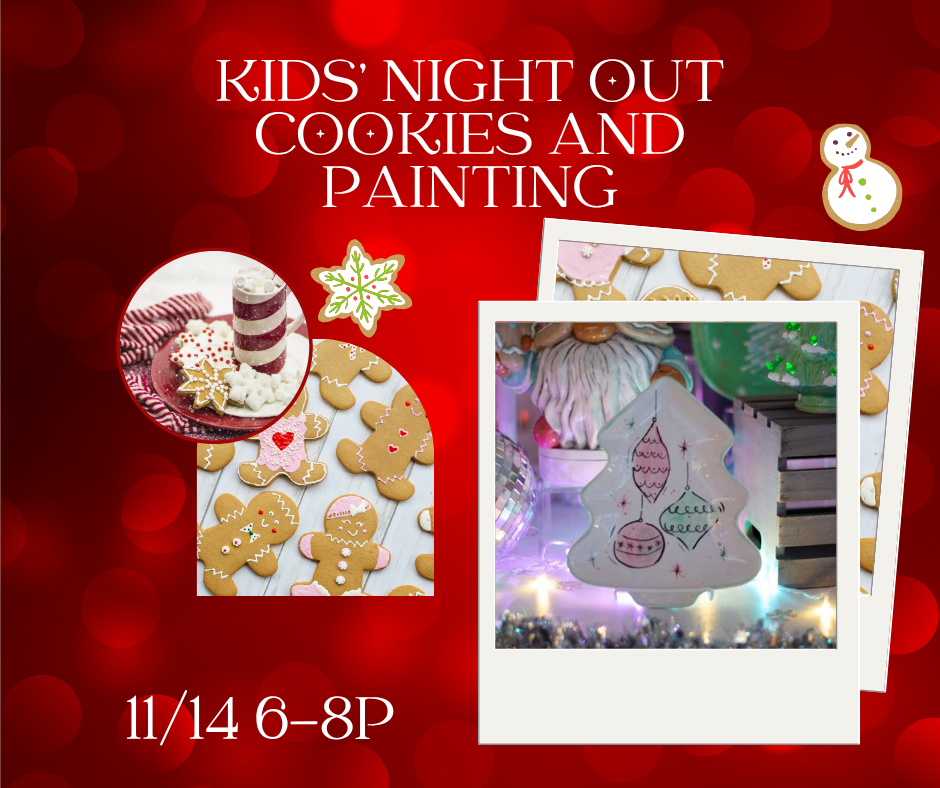 We're excited to enjoy the warm, cozy atmosphere filled with holiday music, laughter and creativity. This is a kids' night out; Drop of your little ones with us and enjoy a night out.