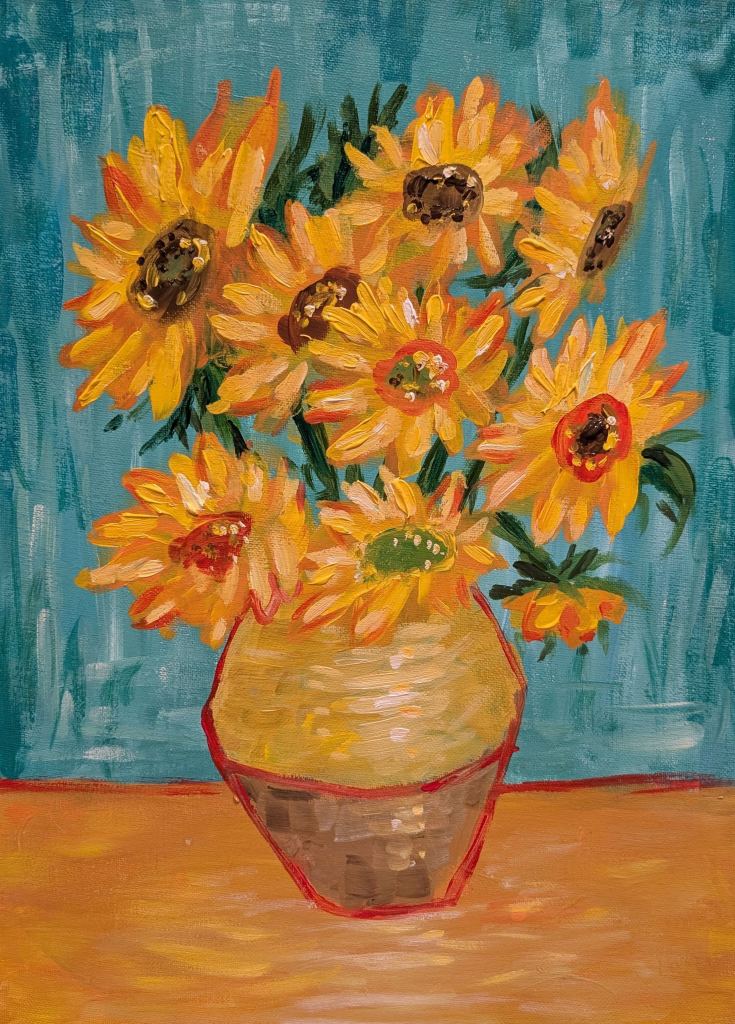 Join us for a vibrant and creative painting class inspired by Vincent van Goghs iconicĀ Sunflowers! Whether you're a beginner or an experienced painter, this guided session is designed to help you explore bold brushstrokes, rich textures, and bright, expressive color just like Van Gogh himself.