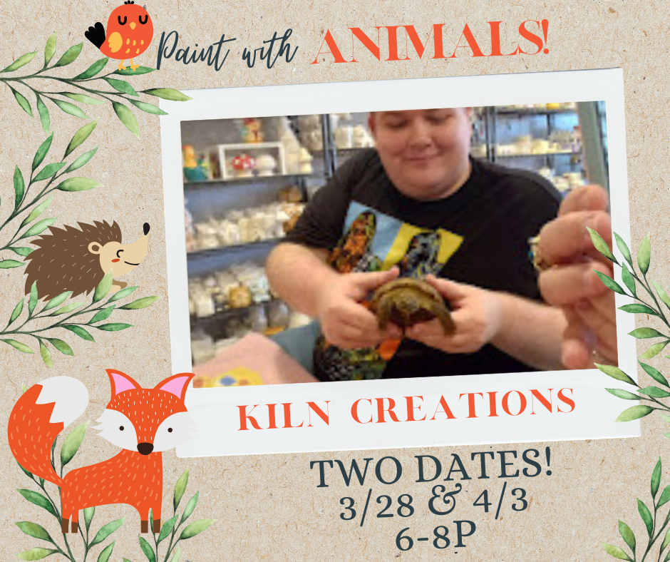 Get ready for a wild and whimsical painting experience at Kiln Creations! Join us for "Paint with Animals" featuring the one and only Hedgehog Hannah.