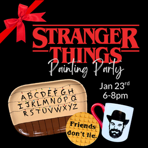 Give the gift of a painting experience this holiday season! Step into the Upside Down for a night of creativity! Join us for Stranger Things Painting Party, where we will channel our inner Eleven, crank up the 80s tunes, and paint pottery inspired by the show.