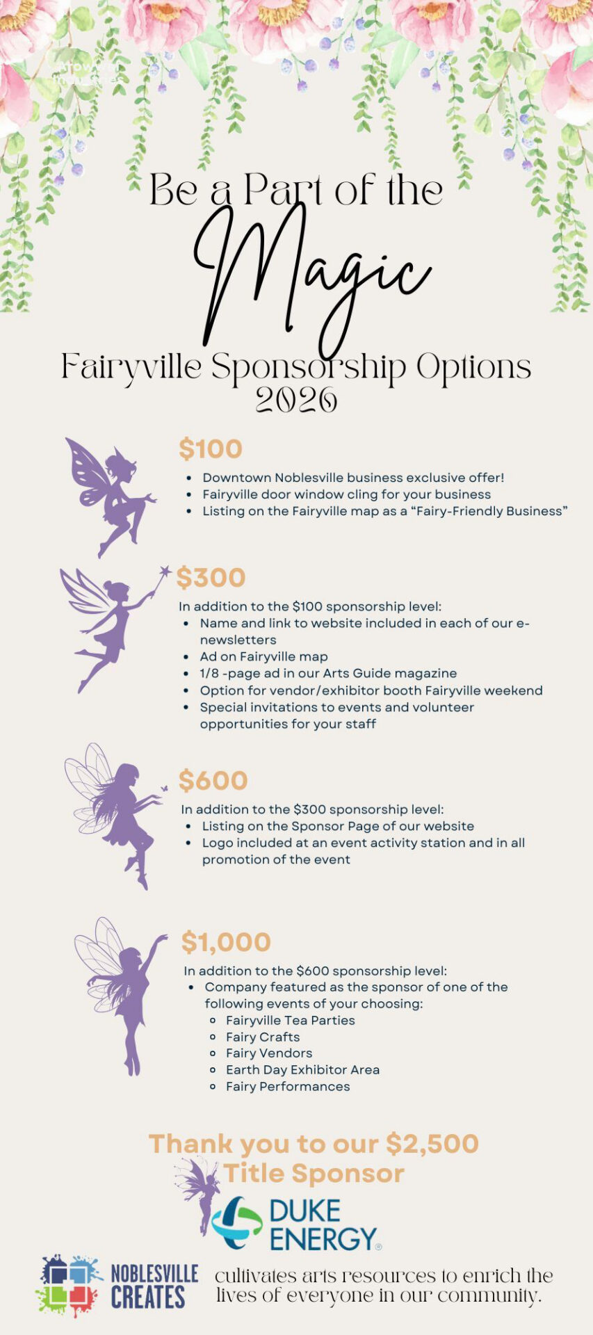 Your entry includes a sponsorhip to Noblesville Creates and: